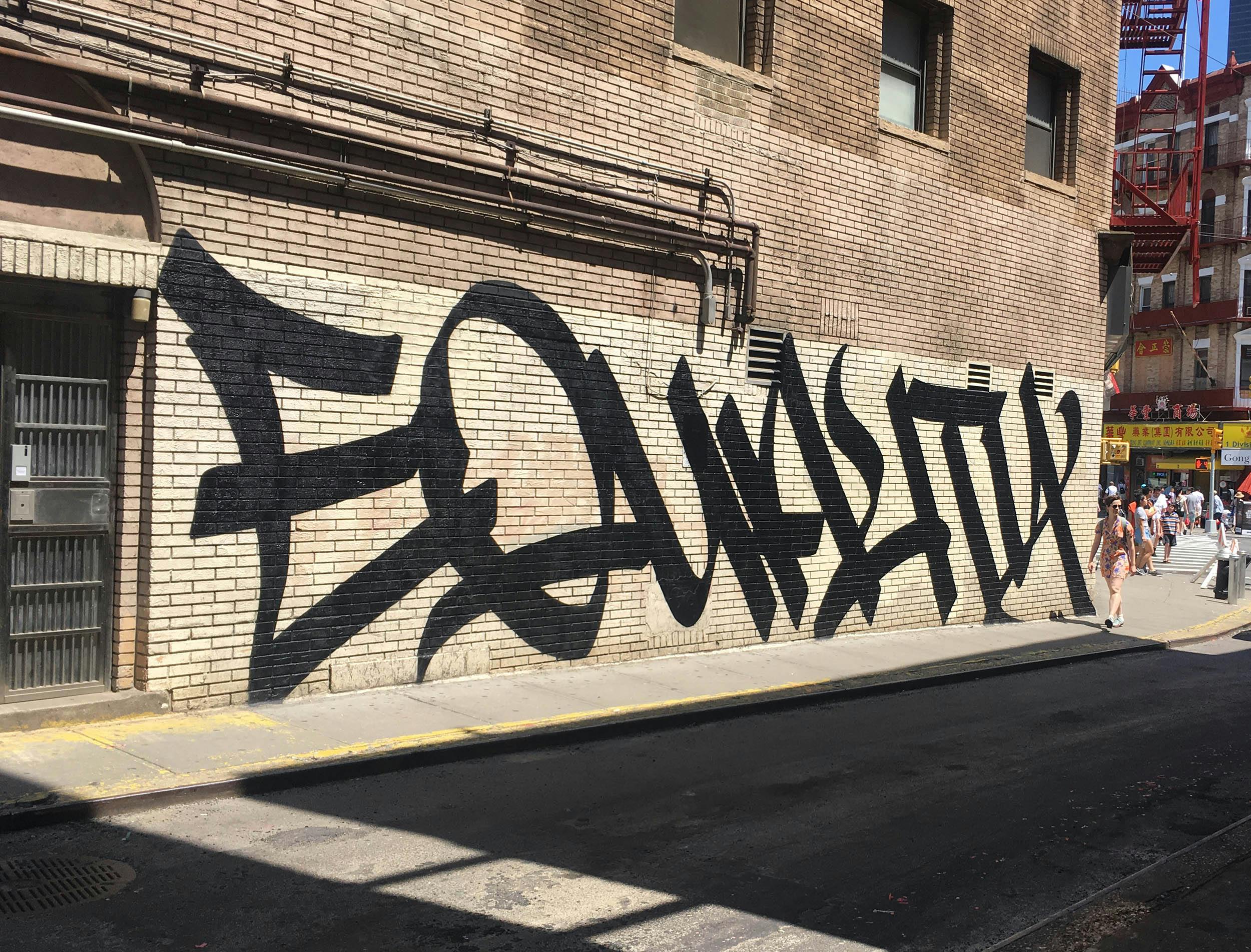 From murals and large scale installations to product collaborations with brands, his work challenges how viewers around the world perceive graffiti. Breaking with conventions, tags that were more common on a street corner are amplified to an architectural scale. In addition to being prominently profiled in The New York Times, FAUST has also been named as one of Juxtapoz Magazine’s ‘Top 20 Graffiti Artists to Know Right Now’, the New Yorker’s ‘Calligraphy Stars of Instagram’, and Paper Magazine’s ‘Young NYC Artists Shaking Things Up’.