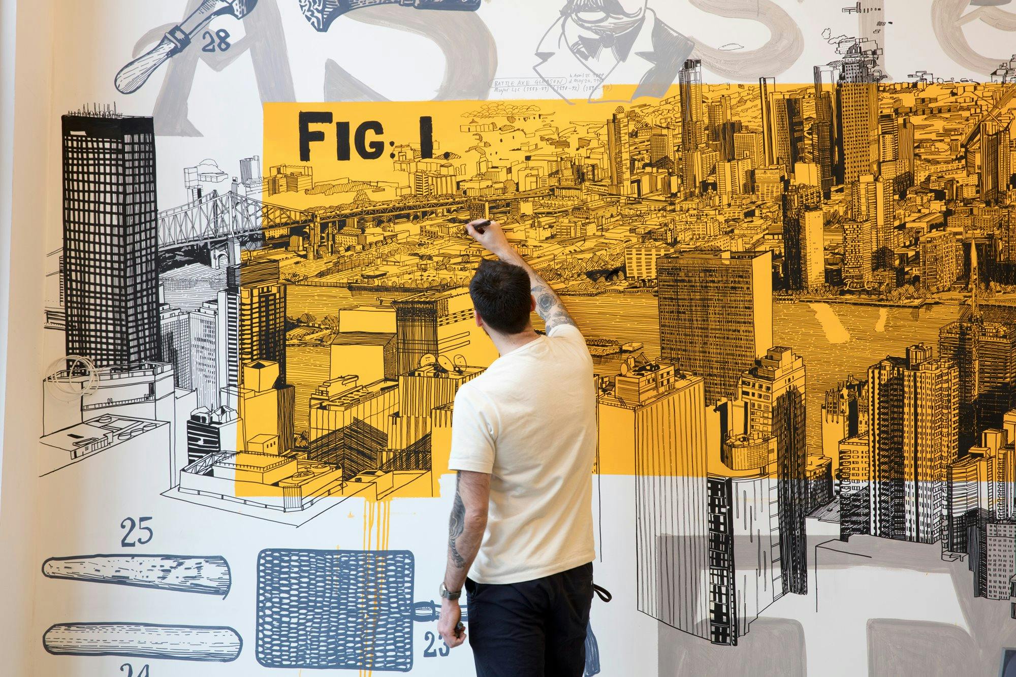 Between exhibiting internationally, selling to collectors, creating murals at scale, and working with select clients like Apple, Björn Ulvaeus (ABBA) BMW, Roman Mars (99% Invisible), The Chicago Cubs and MGM (to name but a few), Pat is never without a pen in hand.
